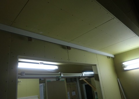 隙間が空いているのが分ります。この隙間は幅木(はばき:巾木とも書きます。壁と床の取り合い部に設ける部材のこと)で隠してしまいます。