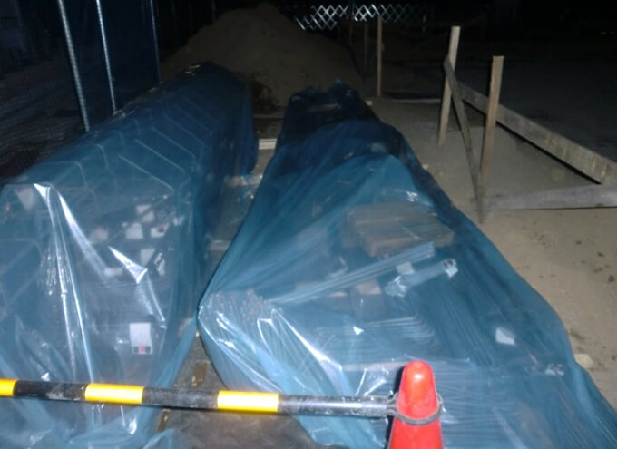 現場に到着してみると今日は特に作業は無かったようで、何も変わっておりません。冒頭の写真でもお分かりのように基礎に配筋される鉄筋が現場に運び込まれていただけでした。
