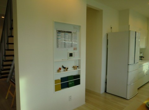 キッチン近くにはお馴染みリモコンニッチ、オプションの少ないこの展示場でもしっかりと設置されているところをみると、需要は相当高いのかもしれません。